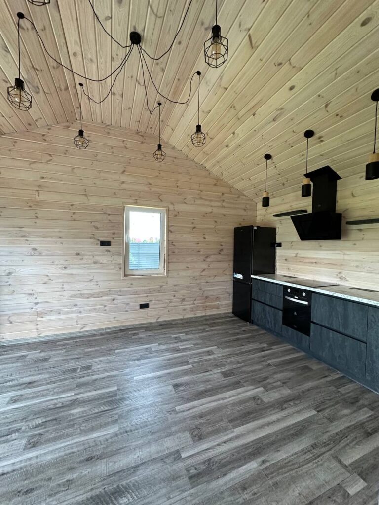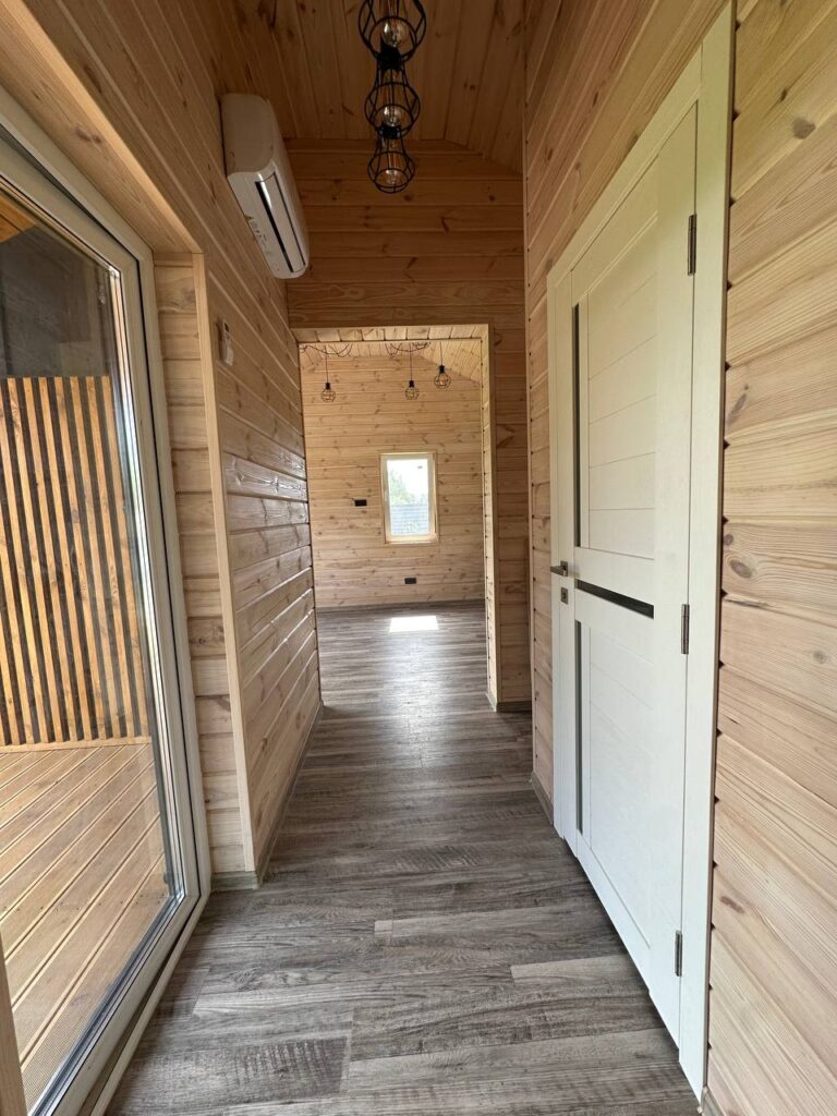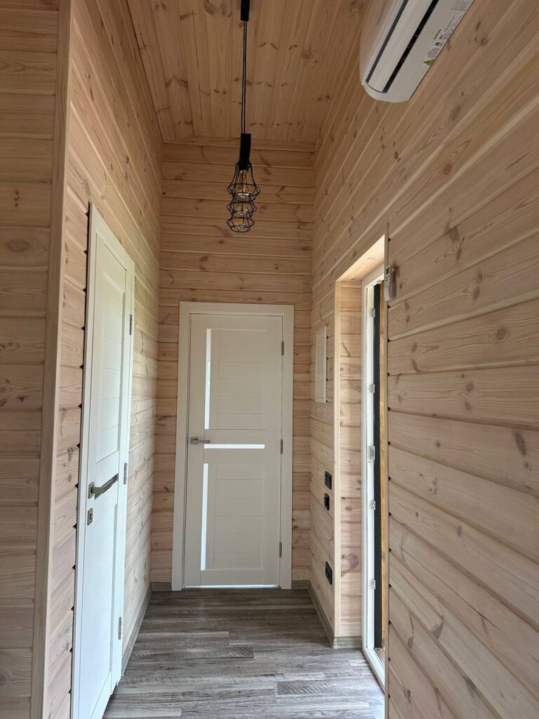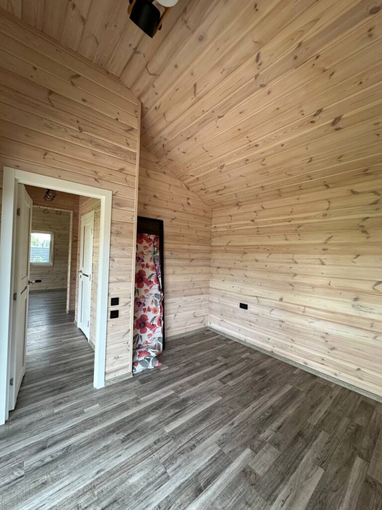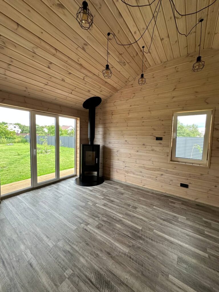 - Внутрішнє оздоблення – фальш-брус 20 мм + гіпсокартон, ламінат та плитка