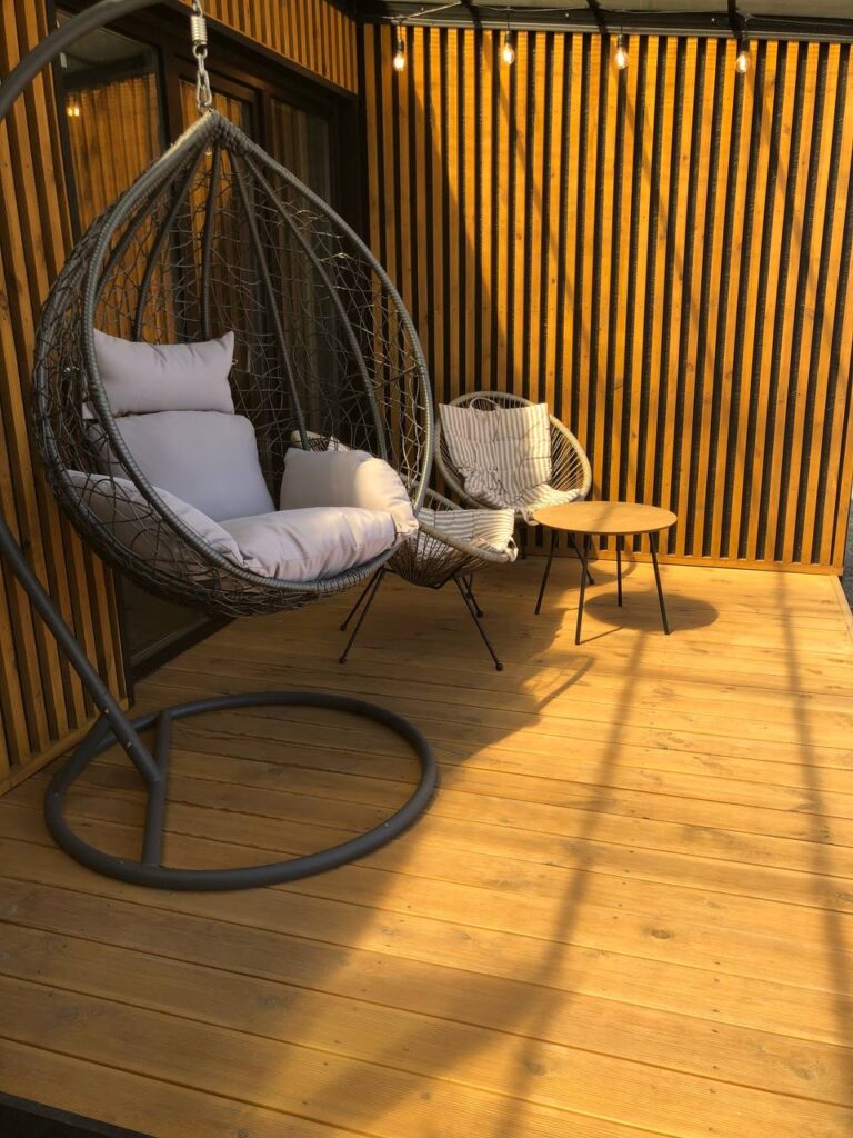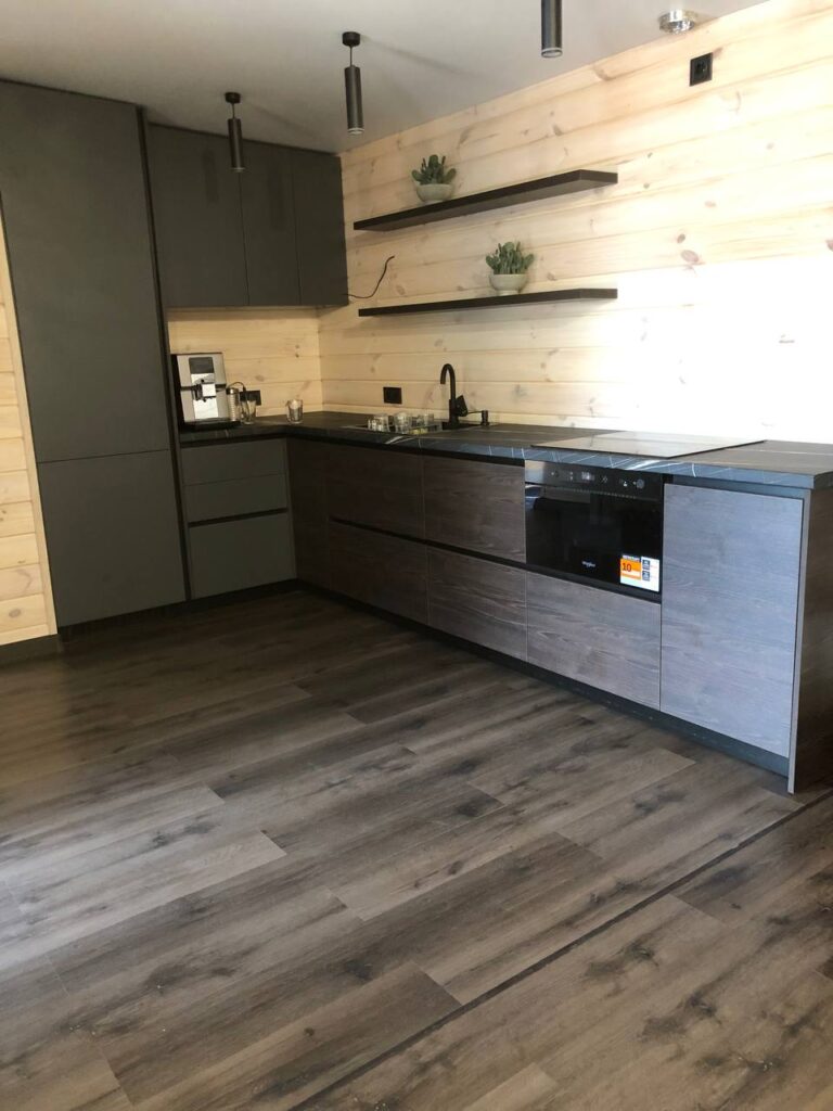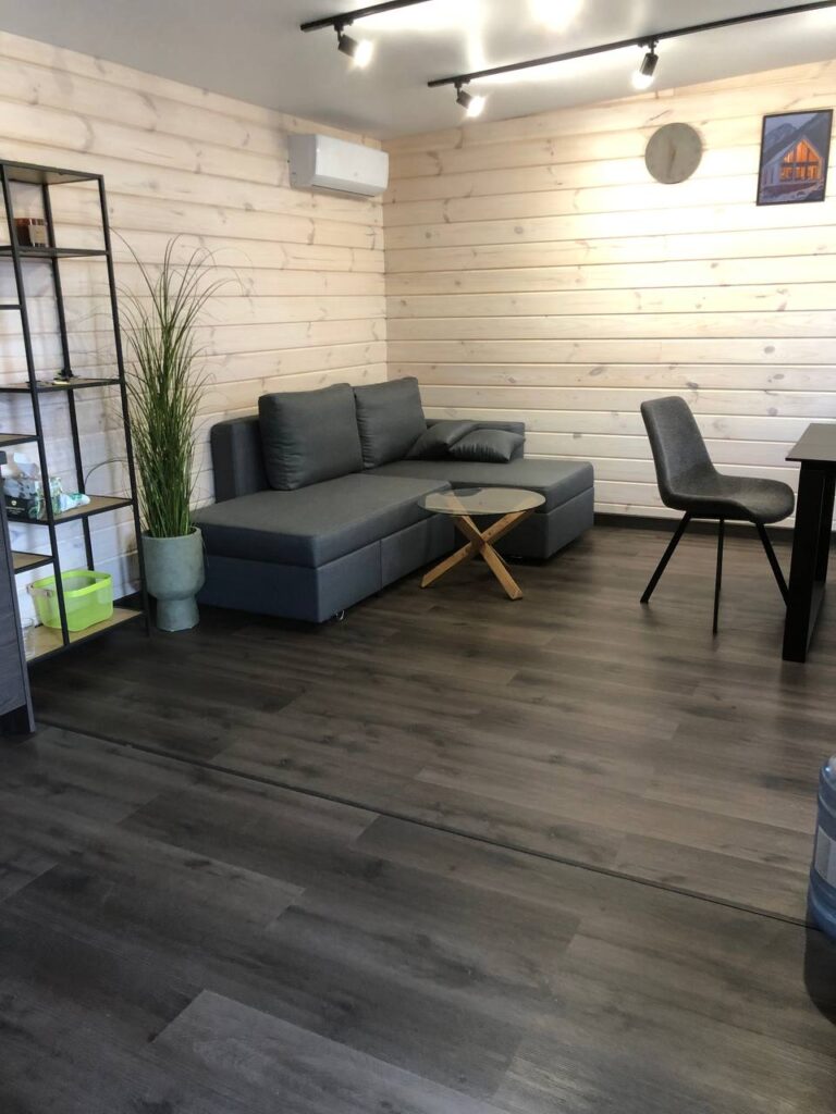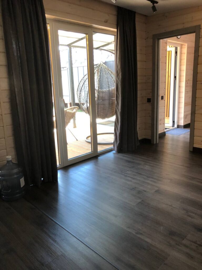 - Внутрішнє оздоблення – фальш-брус 20 мм + гіпсокартон, ламінат та плитка